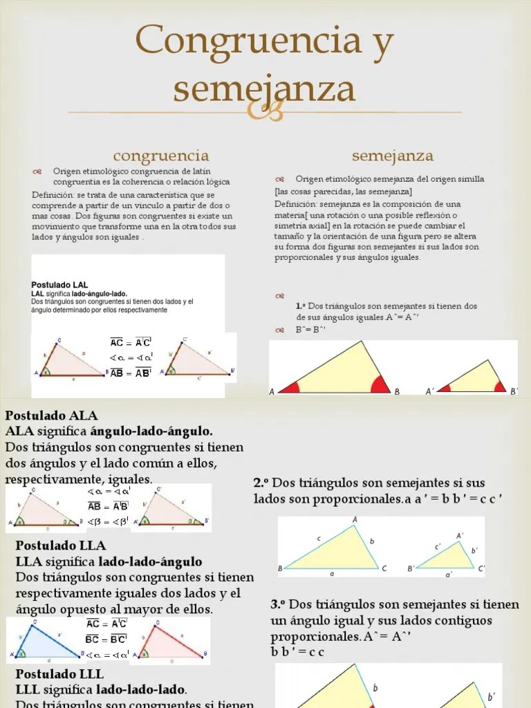 Basados en esta afirmación, ¿cuáles ángulos son congruentes y cuáles lados son proporcionales? Si son proporcionales significa al comparar . Dos figuras son congruentes si tanto los ángulos correspondientes como los lados son iguales. 'figuras congruentes y semejantes' proporcionalidad significa que tiene una relación constante. Tambien se entiende que dos figuras .